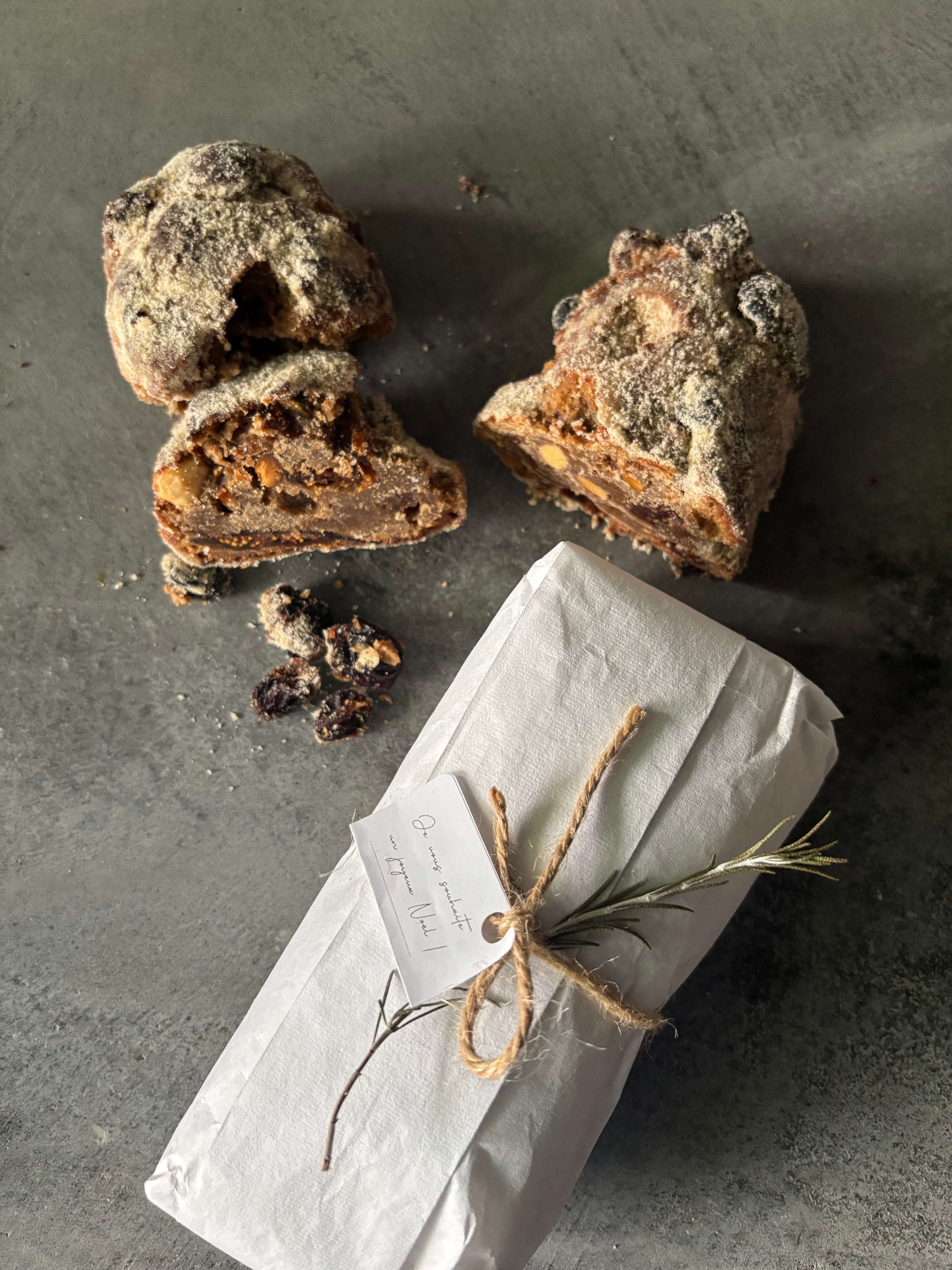 5種類の全粒粉を使った、 圧倒的全粒粉感のシュトレン。 5種のオーガニックドライフルーツ、3種のナッツで贅沢な味わい。 特定原材料/小麦・乳成分・オレンジ・アーモンド